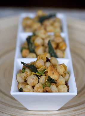 Cooking Notes: This technique lends itself to other beans, such as cooked runner beans and fava beans, and to fresh English peas. Entertaining notes: You can fry the chickpeas 1 hour in advance of serving. If you want to serve them warm, you can heat them up for a few minutes on a rimmed baking sheet in a 300°F oven.